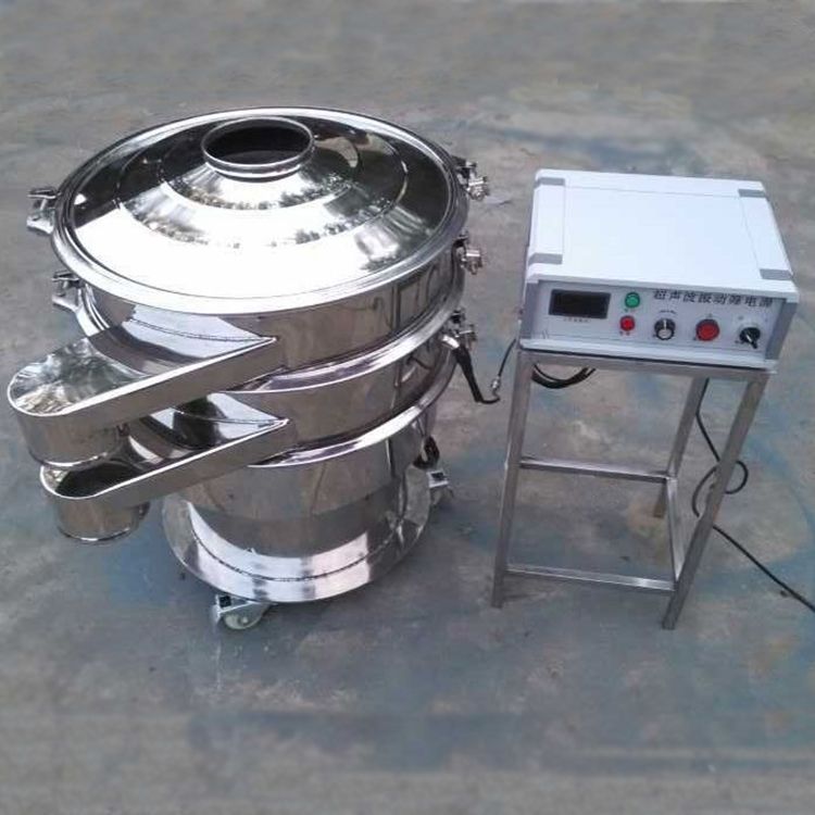 超聲波振動篩是將220V、50Hz或110V、60Hz電能轉(zhuǎn)化為36KHz的高頻電能,輸入超聲換能器,將其變成36KHz機械振動,產(chǎn)生的功率超聲波使篩網(wǎng)作高頻振動。篩網(wǎng)上的物料在作低頻旋振運動的同時,疊加上超聲振動,既可防止網(wǎng)孔堵塞,又可使篩分機提高產(chǎn)量和質(zhì)量,從而達到快速篩分和清網(wǎng)的目的,使超微細粉篩分成為易事。該系統(tǒng)在傳統(tǒng)的振動篩基礎(chǔ)上在篩網(wǎng)上引入一個低振幅、高頻率的超聲振動波(機械波),以改變超微細分體的篩分性能。特別適合高附加值精細分體的用戶使用。
