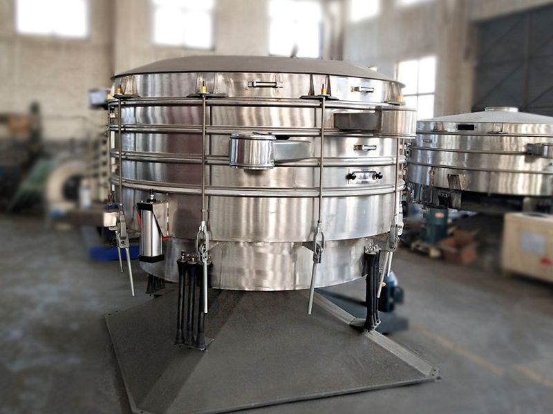 搖擺篩是一種仿人工搖動的低頻旋振篩,其原理是:瞬時運動為沿徑向的位移和以此位移為軸的圓周運動的合成(螺旋運動),