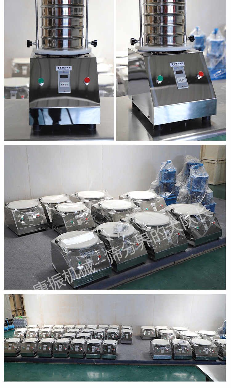 “機(jī)械篩分”將篩子按孔徑大小疊在一起,給料放在頂上一層篩子上,并加上蓋和底盤(pán),一般疊5~6個(gè)篩子。然后放在機(jī)械振篩器上進(jìn)行機(jī)械振動(dòng)篩分。通常,振動(dòng)時(shí)間為20分鐘。檢測(cè)篩分質(zhì)量時(shí),再用振篩器振篩器振篩5分鐘,如每分鐘篩下量小于0.2%試驗(yàn)樣量即為合格,對(duì)于粗粒物料,過(guò)篩率小于1%即可。如篩分過(guò)程中損失量超過(guò)總篩分量的0.5%時(shí),試驗(yàn)必須重新取樣進(jìn)行。為避免損失和延長(zhǎng)篩分時(shí)間,有時(shí)在開(kāi)始篩分時(shí)先用細(xì)的篩子將粉塵篩除
