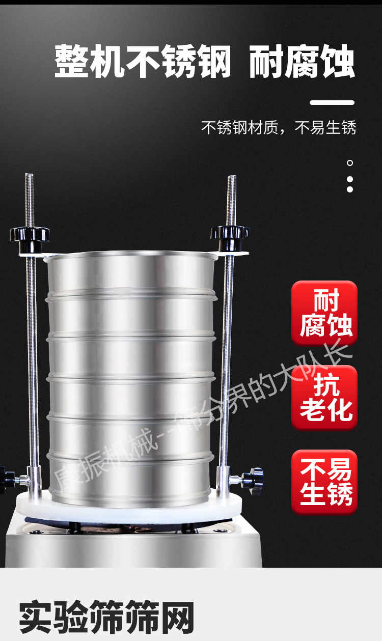 標(biāo)準(zhǔn)檢驗(yàn)篩(試驗(yàn)篩)又叫標(biāo)準(zhǔn)篩,是具有標(biāo)準(zhǔn)篩孔的篩析工具,又是檢驗(yàn)其他粒度檢測(cè)方法的工具或依據(jù),實(shí)驗(yàn)室篩分所用的篩子是按表中有關(guān)標(biāo)準(zhǔn)制成的篩孔大小不一的試驗(yàn)套篩,即標(biāo)準(zhǔn)篩。標(biāo)準(zhǔn)篩是由直徑15~450mm,高為25~50mm的篩框和篩網(wǎng)組成。篩框不銹鋼板制成,實(shí)驗(yàn)室篩分用套篩是一個(gè)篩子套在另一個(gè)篩子上疊成的。上層的篩孔大,下層的篩孔小。上部加一個(gè)蓋,下部加一個(gè)底盤(pán),以減少灰塵和損失。底盤(pán)還用來(lái)承接通過(guò)后一個(gè)篩子的細(xì)粒級(jí)產(chǎn)品。