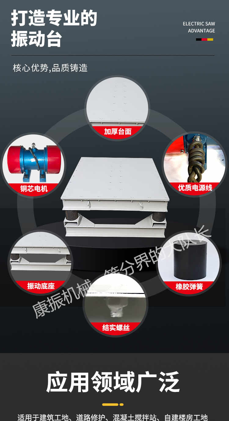 被廣泛應(yīng)用于試驗(yàn)室、現(xiàn)場(chǎng)工地作試件成型和預(yù)制構(gòu)件震實(shí)各種板柱、梁等混凝土構(gòu)件振實(shí)成型,