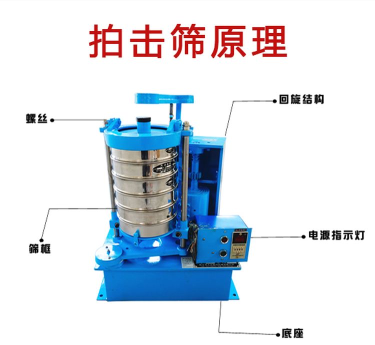 拍擊式標(biāo)準(zhǔn)振篩機(jī)主要由機(jī)座、篩與傳動(dòng)機(jī)構(gòu)等部分組成??膳鋫鋵S脢A具、即可裝夾Φ200試驗(yàn)篩,又可裝Φ75、Φ100套篩,裝夾方便靈活,夾緊牢靠,拍擊式標(biāo)準(zhǔn)振動(dòng)篩可篩分多種特性的產(chǎn)品。適用于普通磨料粒度組成檢查和超硬材料生產(chǎn)分級(jí)及粒度組成檢查,亦廣泛用于地質(zhì)、冶金、粉體、化工、建工水泥、醫(yī)藥、國防等部門科研生產(chǎn)實(shí)驗(yàn)室,對(duì)物料進(jìn)行篩分檢測(cè)。拍擊篩作為一種試驗(yàn)篩分設(shè)備,優(yōu)點(diǎn)有很多,以下為您列舉5點(diǎn)說明